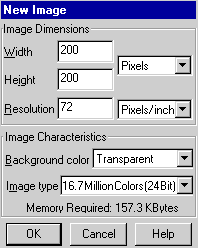 | You change the Image Dimensions by clicking in the "Width" or "Height" box with your mouse and type the dimensions you want. There is a drop-down menu where you can choose from Pixels, Inches or Centimeters. The default is usually set to Pixels and is the one used in tutorials unless otherwise noted.