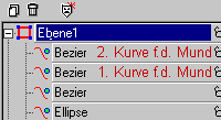 Die Nase und der Mund werden aus Bezierkurven gemacht. Klickt wieder auf den Zeichenstift in der Werkzeugleiste und ändert den Linientyp auf Bezier. |